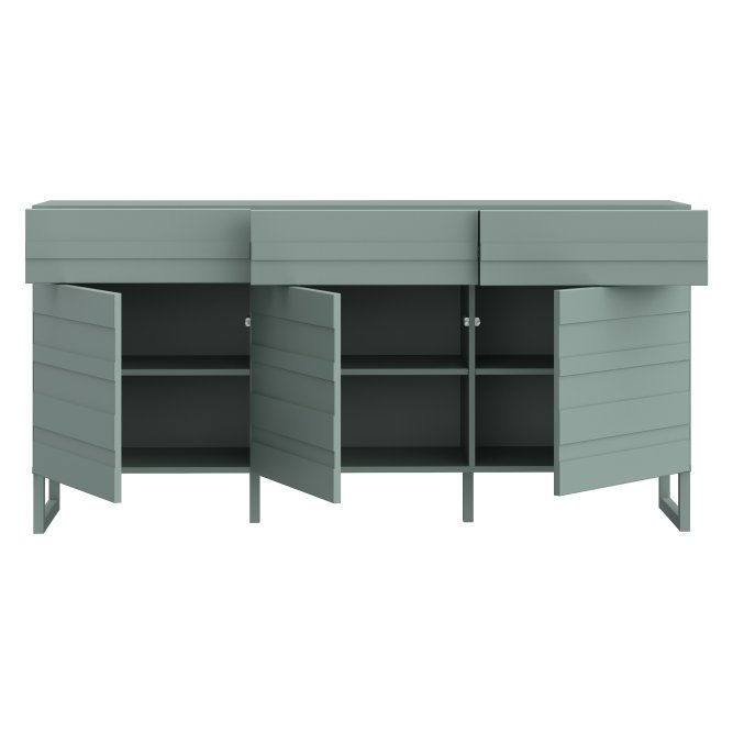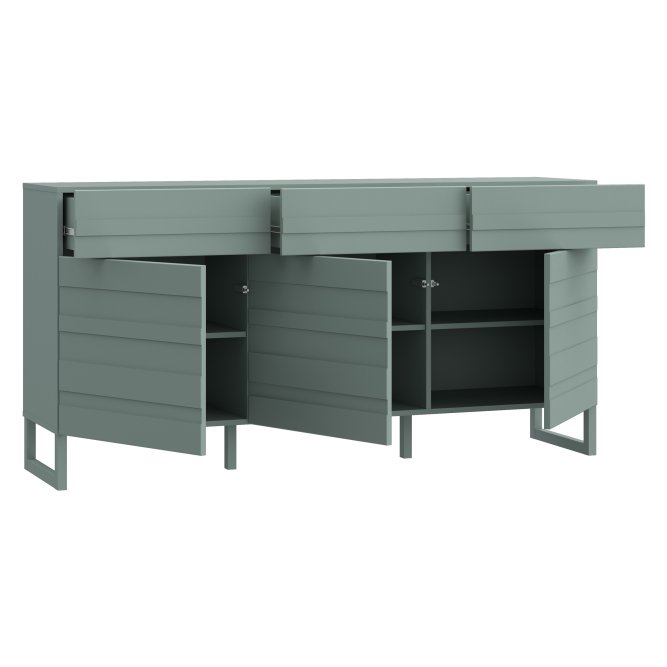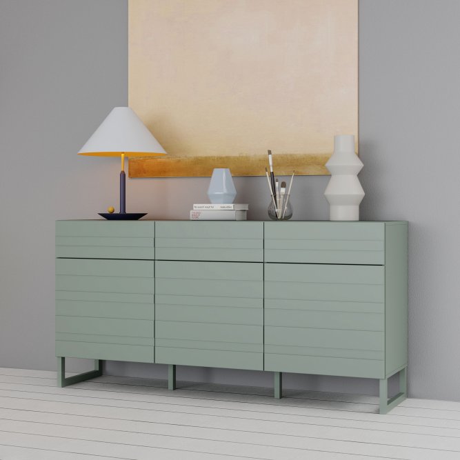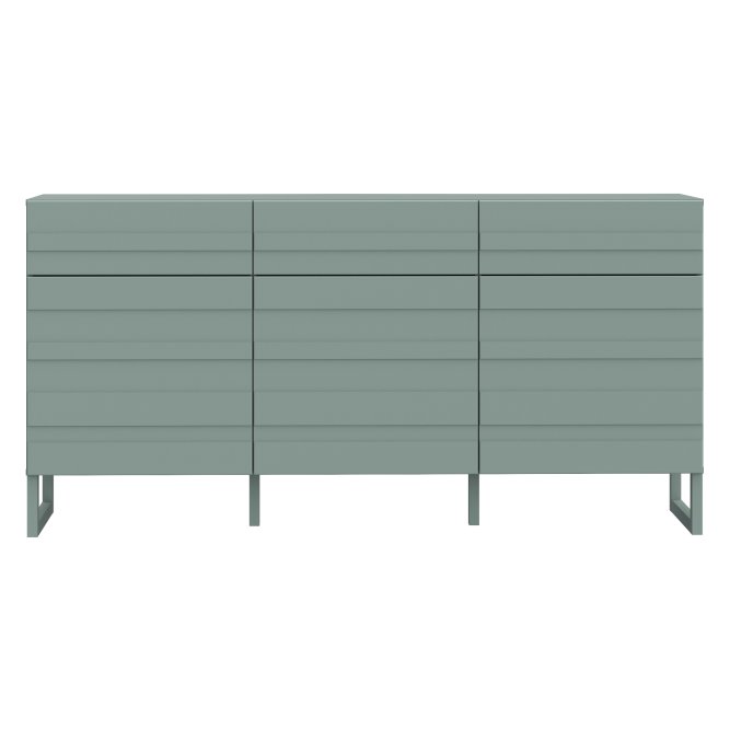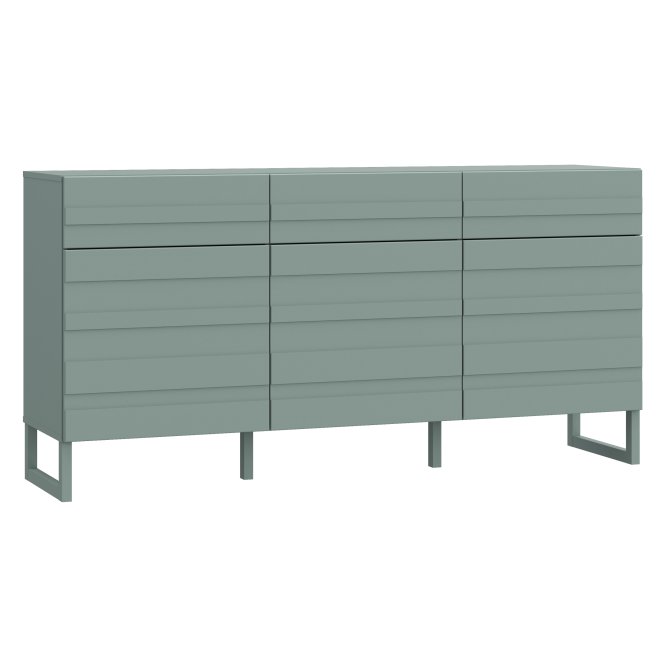 Komoda w modnym kolorze: szałwia z kolekcji BEATA podkreśli unikatowy charakter wnętrza, a jednocześnie zapewni odpowiednią przestrzeń do przechowywania. 3 szuflady i 3 zamykane szafki pomogą Ci pomieścić mnóstwo przedmiotów, jak bielizna, drobna garderoba, dokumenty i różnego rodzaju akcesoria. Blat będzie doskonałym miejscem na wyeksponowanie zdjęć, ozdobnych świeczników, ceramiki, pamiątek z wakacji oraz innych ulubionych dekoracji. Komoda z innymi meblami kolekcji BEATA stworzą spójną aranżację wnętrza.