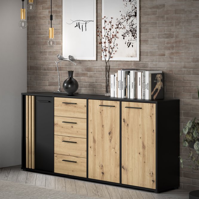 Komoda CIESZYMIR podkreśli unikatowy charakter wnętrza, a jednocześnie zapewni odpowiednią przestrzeń do przechowywania. Blat będzie doskonałym miejscem na wyeksponowanie zdjęć, ozdobnych świeczników, ceramiki, pamiątek z wakacji oraz innych ulubionych dekoracji. Komoda z innymi meblami kolekcji CIESZYMIR stworzą spójną aranżację wnętrza Twojego salonu.
