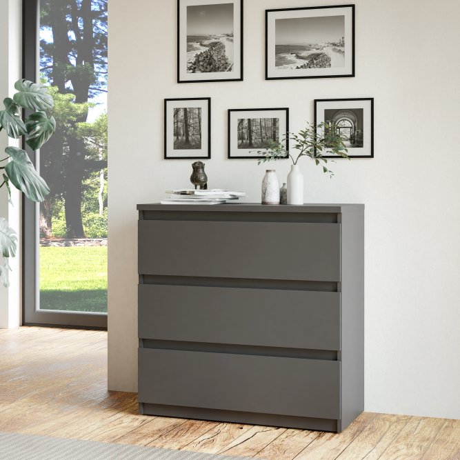 Komoda z kolekcji CELINA dopełni każde mieszkanie urządzone w stylu MODERN. Mebel posiada szuflady (3), dzięki czemu zmieścisz wszystkie niezbędne przedmioty. Na blacie komody wyeksponujesz zdjęcia, kwiaty i pamiątki rodzinne, a całą aranżację wnętrza możesz dodatkowo uzupełnić o pozostałe elementy kolekcji CELINA.