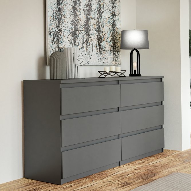 Komoda z kolekcji CELINA dopełni każde mieszkanie urządzone w stylu MODERN. Mebel posiada szuflady (6), dzięki czemu zmieścisz wszystkie niezbędne przedmioty. Na blacie komody wyeksponujesz zdjęcia, kwiaty i pamiątki rodzinne, a całą aranżację wnętrza możesz dodatkowo uzupełnić o pozostałe elementy kolekcji CELINA.