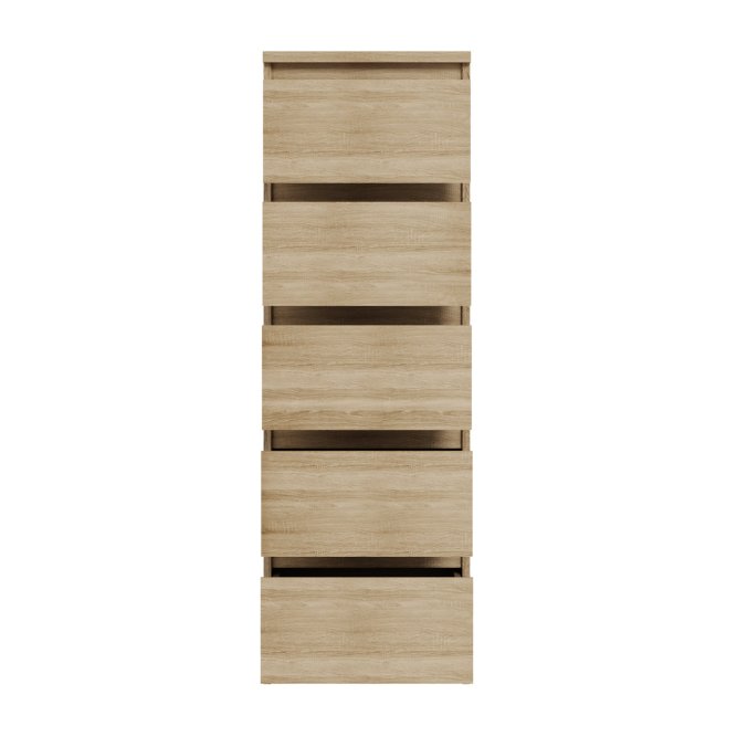 Wysoka komoda w kolorze Dąb Sonoma z kolekcji CELINA to funkcjonalny mebel z pojemnymi szufladami, które pomieszczą wszystkie najpotrzebniejsze rzeczy. Minimalistyczny design sprawdzi się w wielu pomieszczeniach oraz w różnorodnych stylach aranżacyjnych. Dzięki kompaktowym wymiarom, komoda idealnie wpasuje się również we wnętrza mieszkań o mniejszym metrażu.