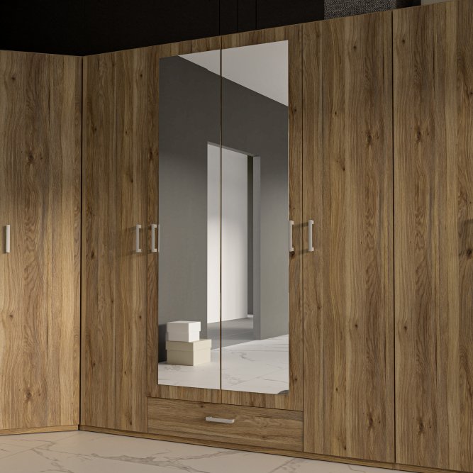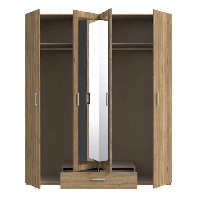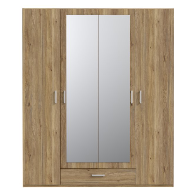 4-drzwiowa szafa uchylna z lustrem i szufladą o szerokości niemal 180 cm z kolekcji EDYTA to idealne rozwiązanie dla osób poszukujących funkcjonalnych i estetycznych rozwiązań do swojej garderoby. Wnętrze mebla możesz spersonalizować, dodając dedykowane półki. Szafa pozwala na łatwy dostęp do przechowywanych rzeczy, a dzięki dekorowi w kolorze drewna wpasuje się w wiele aranżacji wnętrz.