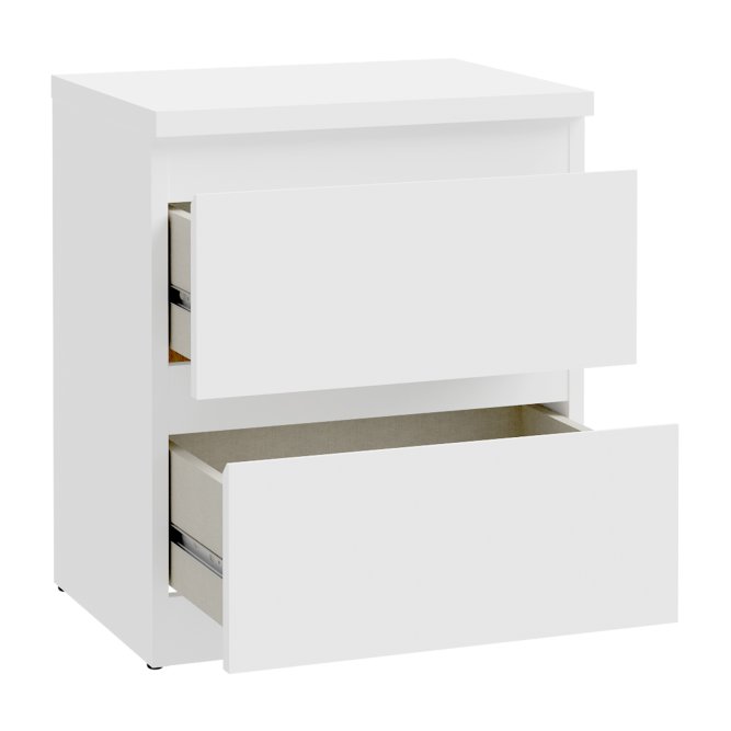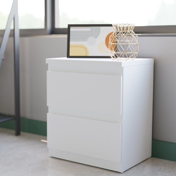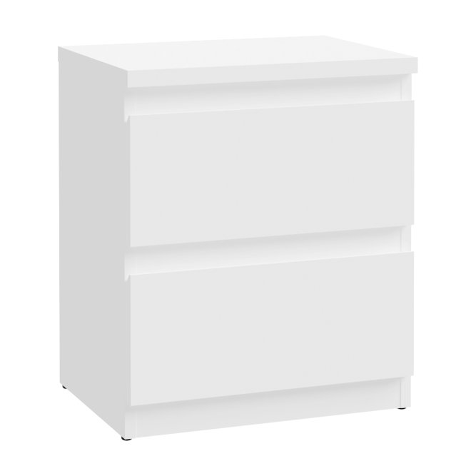 Mała biała komoda z kolekcji EMIL to praktyczny mebel z dwiema szufladami, idealny do przechowywania drobiazgów. Dzięki kompaktowym rozmiarom sprawdzi się w różnych pomieszczeniach, spełniając wiele funkcji: w sypialni jako szafka nocna, w przedpokoju jako konsola na klucze i akcesoria, a w biurze jako kontenerek na dokumenty.